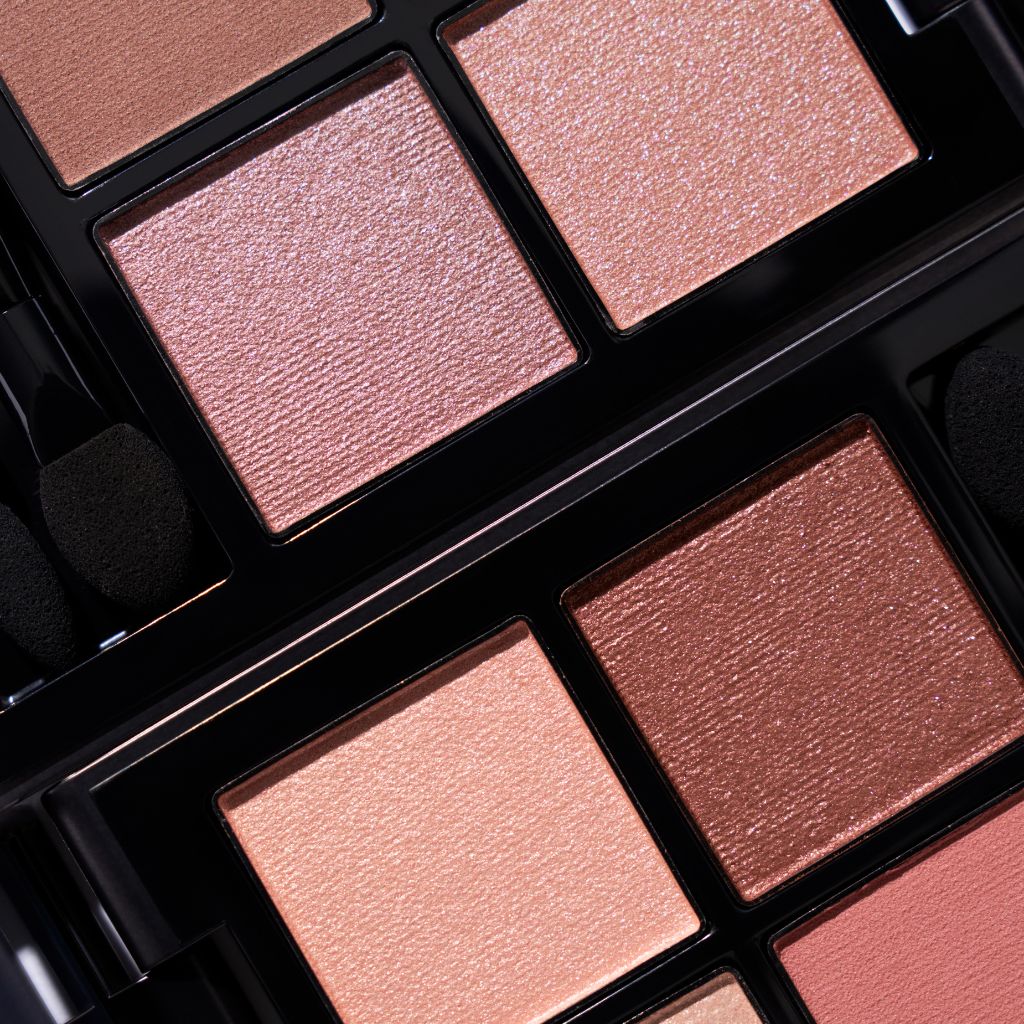 每款眼影盤包含四種不同的顏色和質地:透明光澤的「彩紗」、高級細膩的「緞光」、平滑貼合的「啞光」和高亮度的「金屬」。