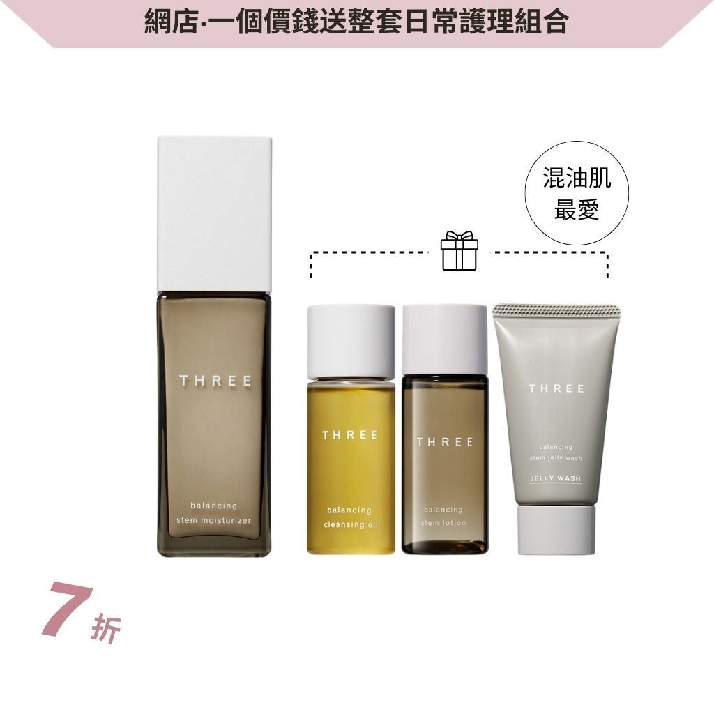 平衡萃本乳液 80ml x 1 | 平衡潔膚卸妝油 28ml x 1 | 平衡萃本潔面啫喱 22ml x 1 | 平衡萃本化妝水 28ml x 1