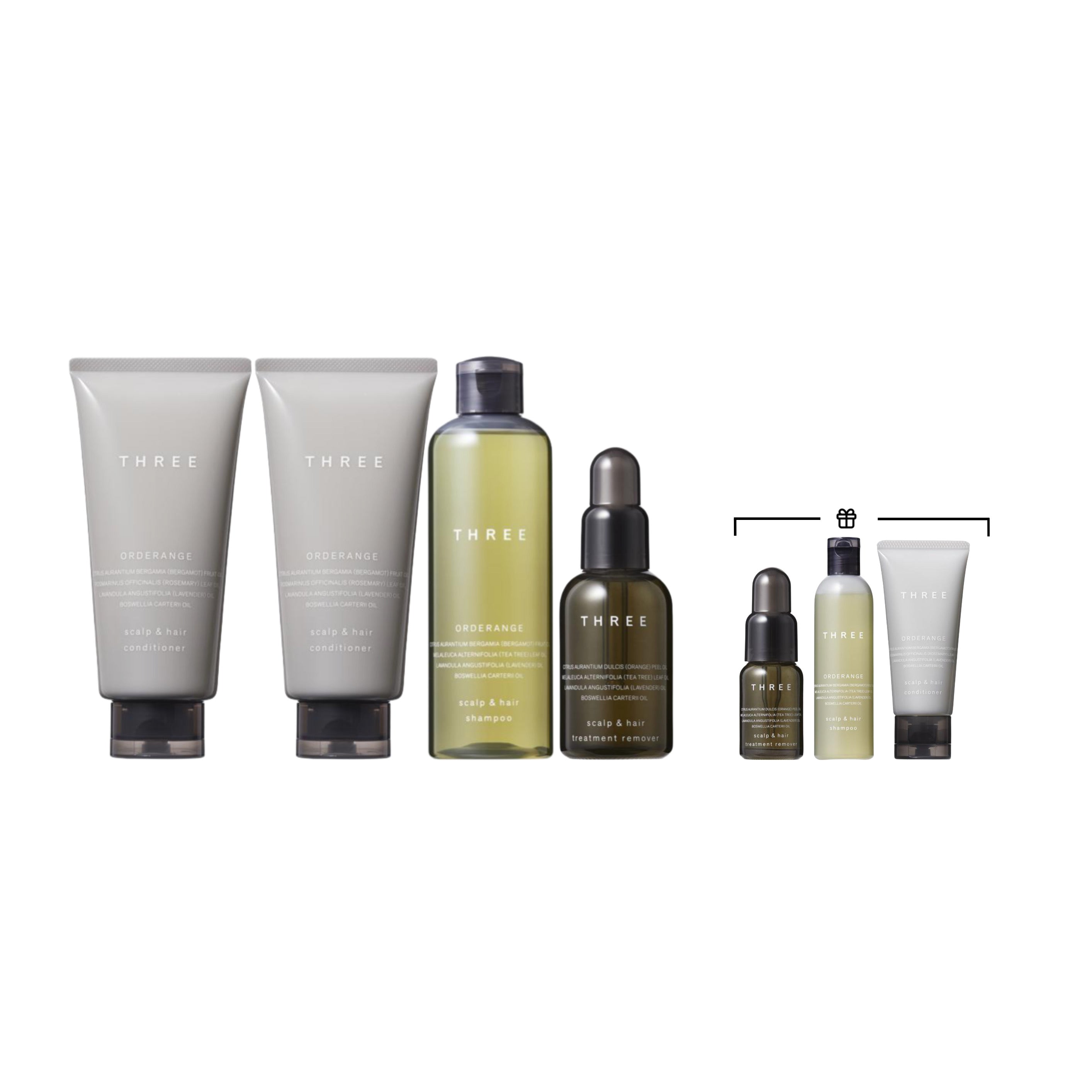 THREE Ultimate Soothing Series awakens the natural balance of scalp and hair through gentle cleansing and deep repair.