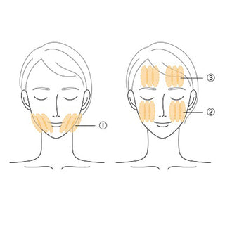 (1) Facial lines → (2) Cheeks → (3) Forehead.