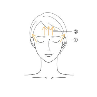 Use your whole finger to pull up (1) temple → (2) forehead.