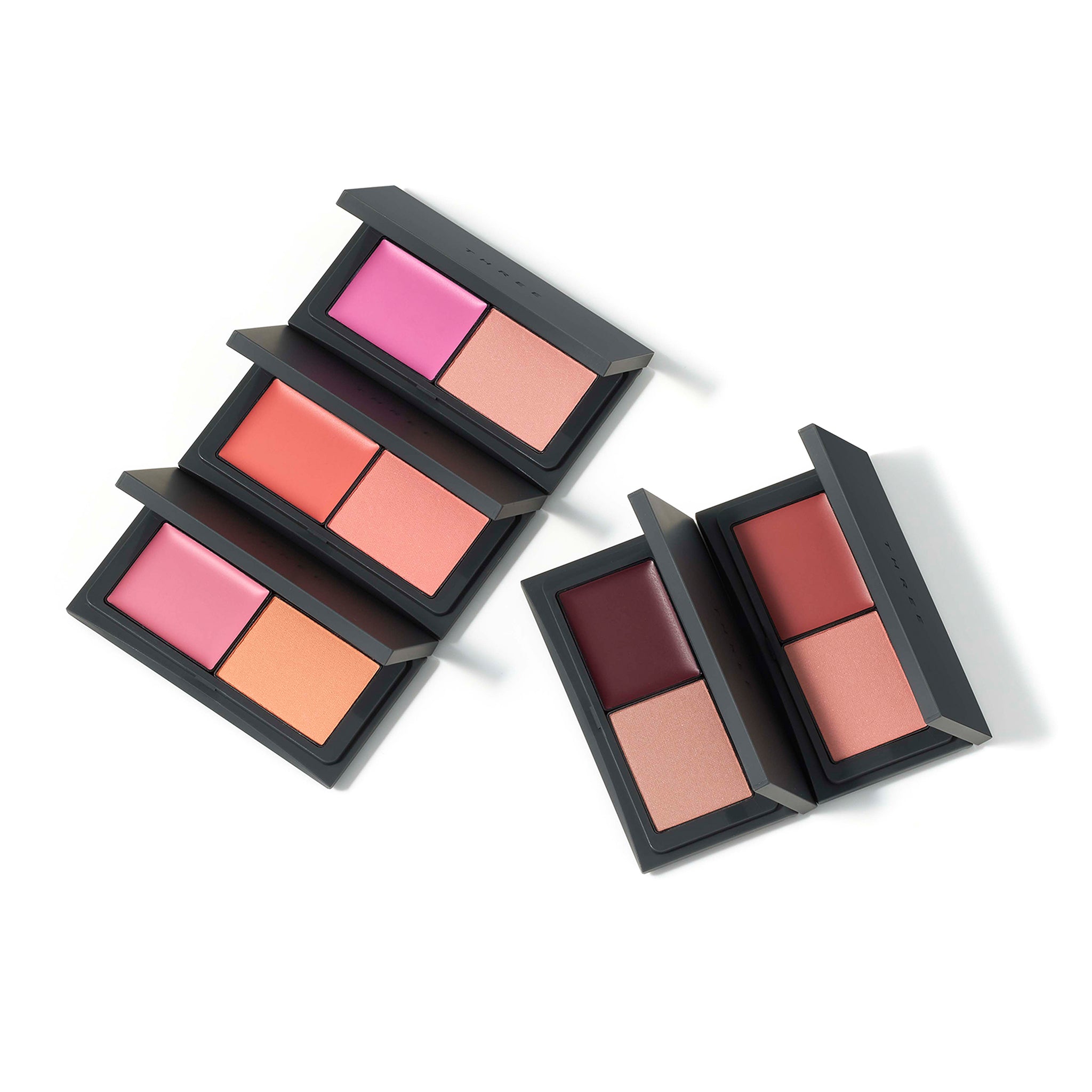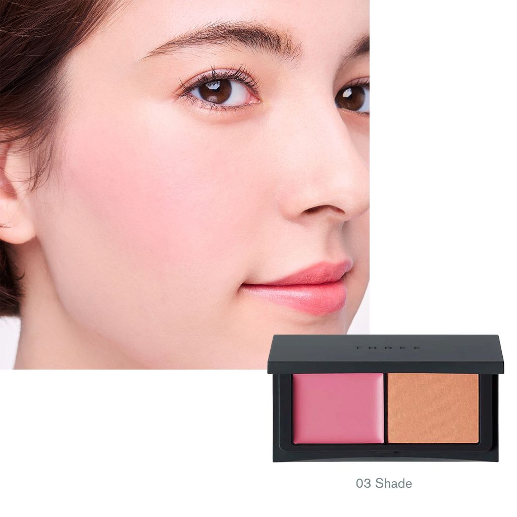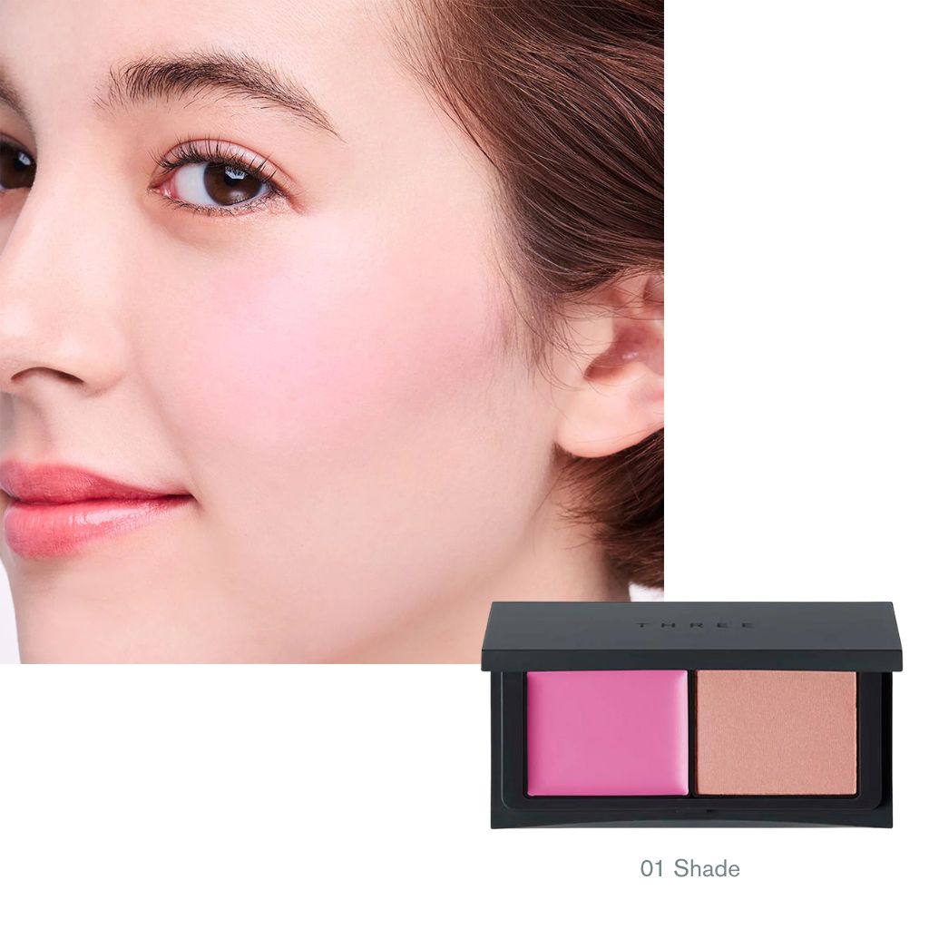 緊密貼合肌膚的霜胭脂打造紅潤血色感、彷如薄紗般的粉狀胭脂增添肌膚透明感及光澤。